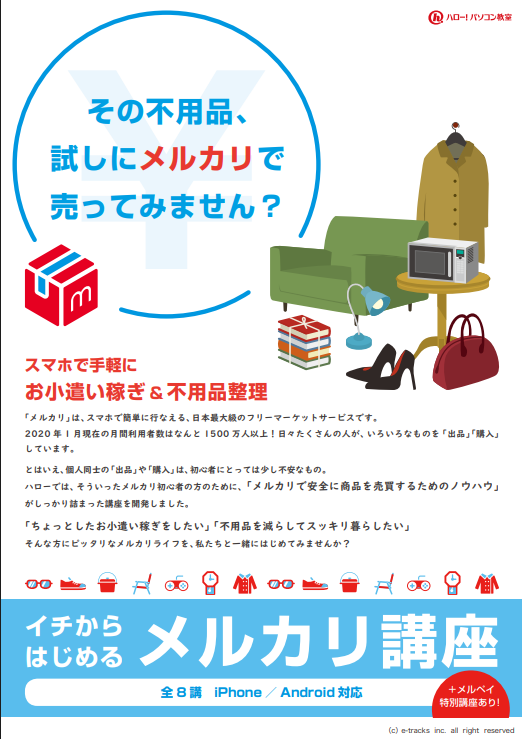 パソコン教室ではスマートフォンで『メルカリ講座』も行っています。